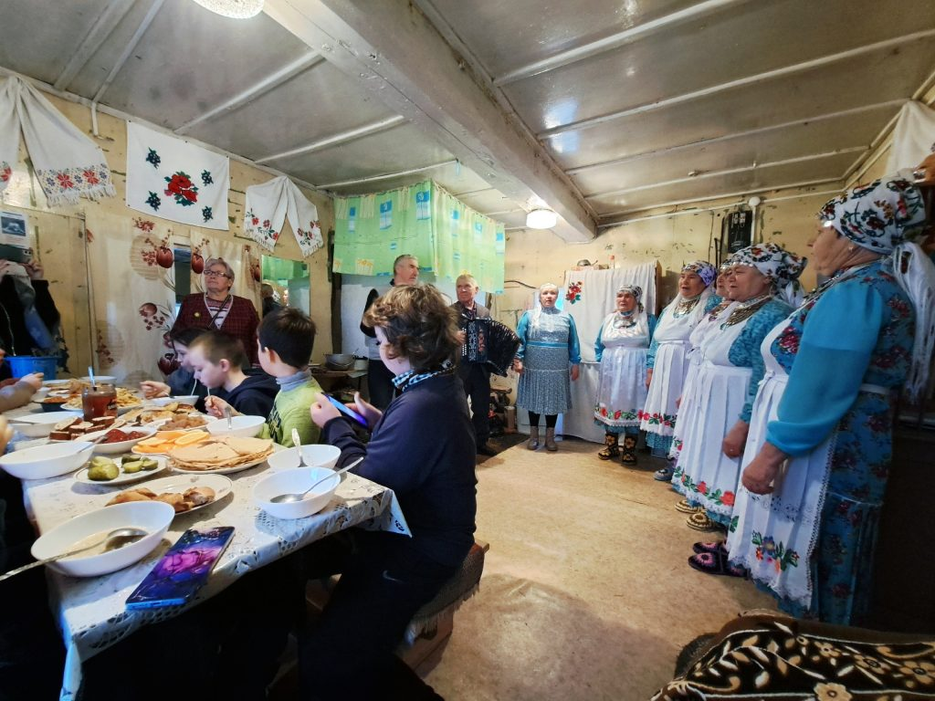 Ярким моментом экспедиции стала игра с лаптями, которая способствовала сплочению участников и погружению их в народные традиции. Завершился маршрут в доме местных жителей, где гостей радушно угостили традиционными перепечами.