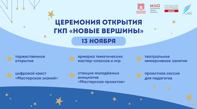 13 ноября 2025 года в Московском дворце пионеров пройдёт церемония открытия нового сезона городской конкурсной программы «Новые вершины».