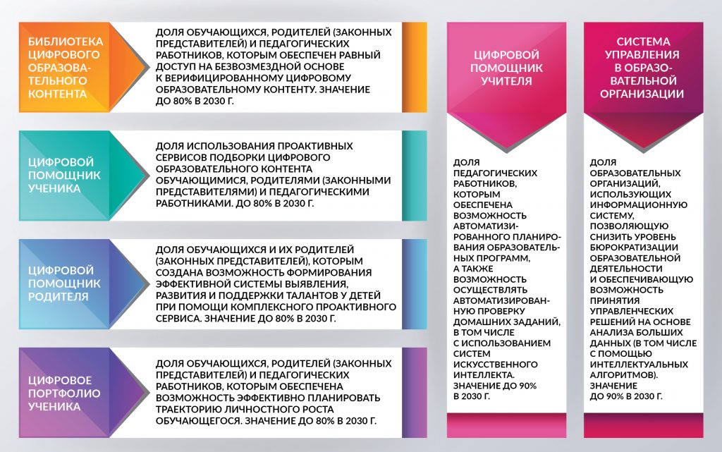 До 2030 года в системе образования запланировано шесть стратегических инициатив по разработке цифровых сервисов [14] (рис. 6):
