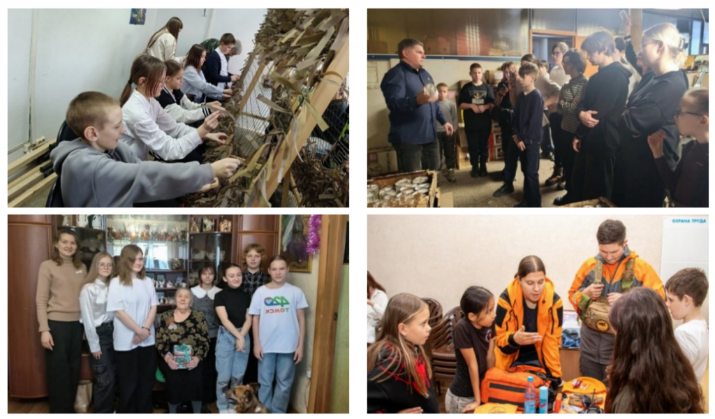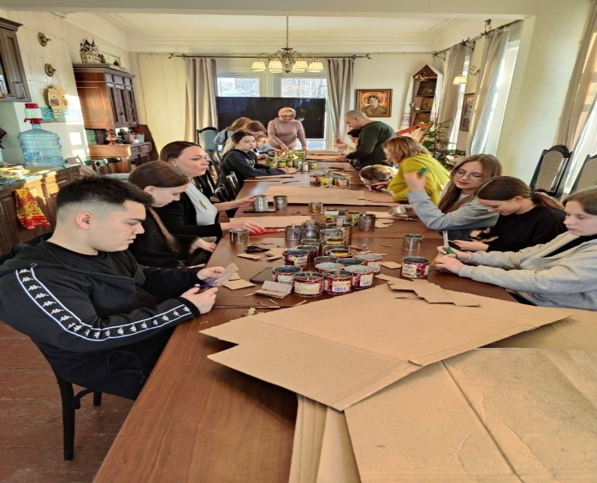 – выезды в центры оказания помощи участникам СВО и выполнение конкретных заданий – плетение маскировочных сетей, изготовление носилок, окопных свечей и др.;